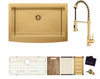 Glacier Bay 33 inch Farmhouse/Apron-Front Single Bowl 18 Gauge Gold Stainless Steel Workstation Kitchen Sink with Spring Neck Faucet. All in One.
